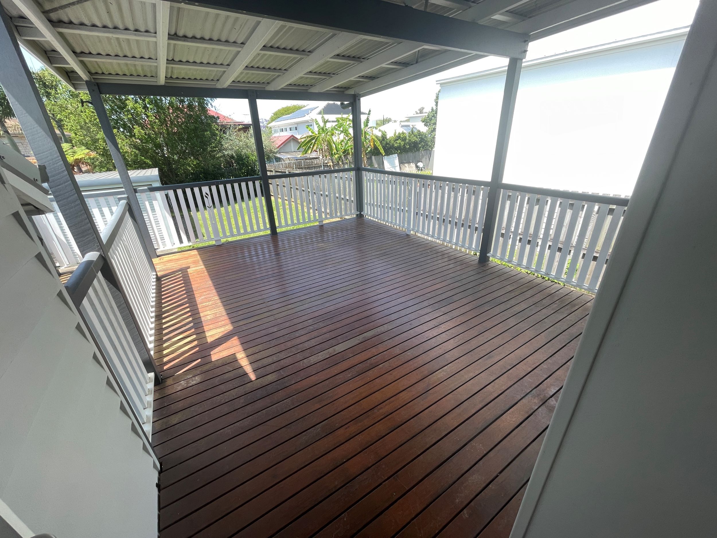 - Nice rear deck with roof over comes with home