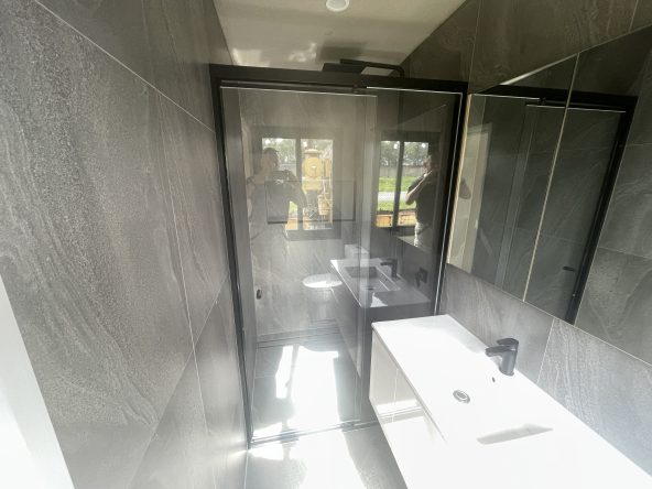 - Separate Bathroom with full height tiling, recessed mirror cabinet, separate shower and wall hung vanity