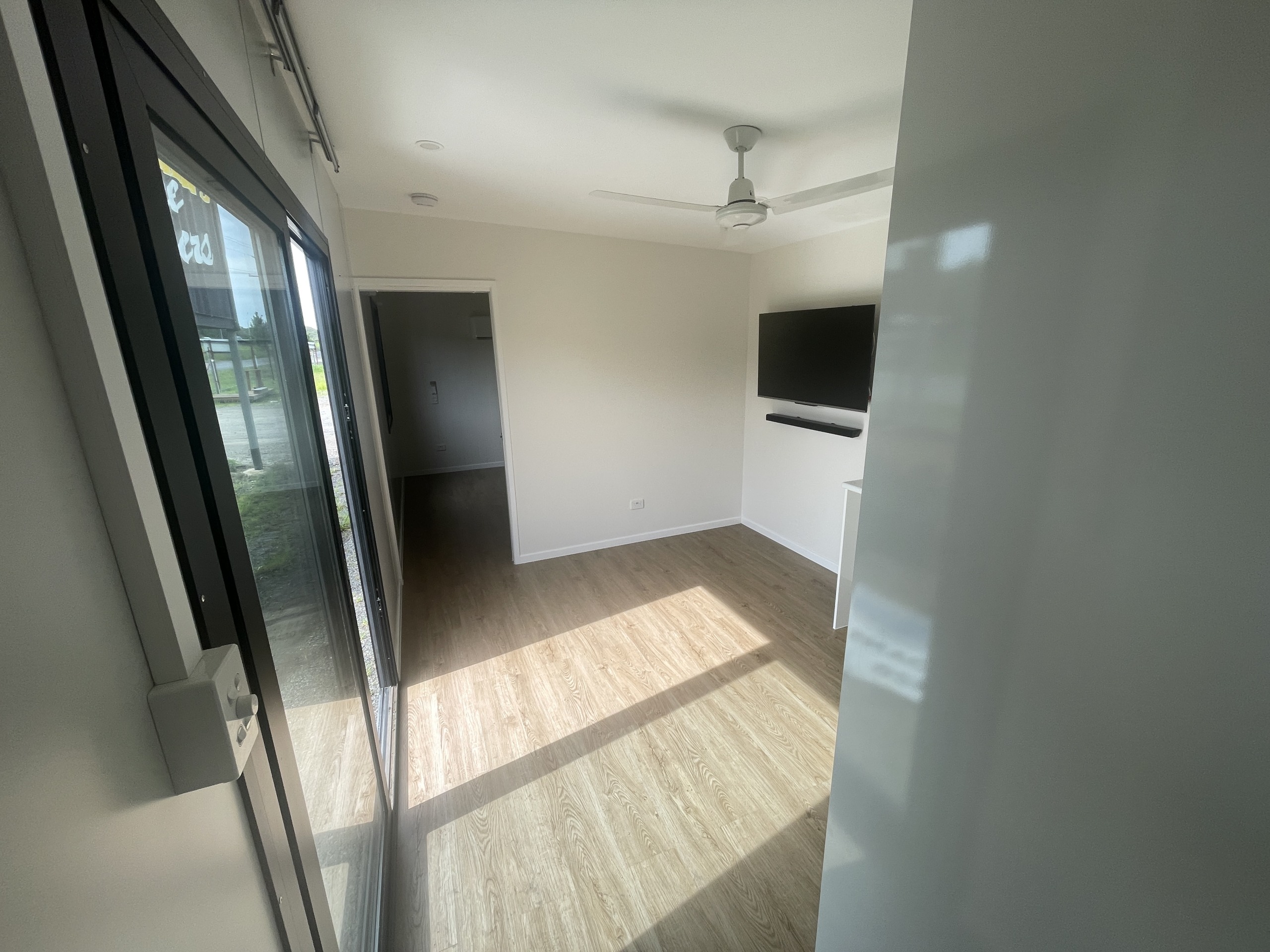 - Generous living area with ceiling fan
