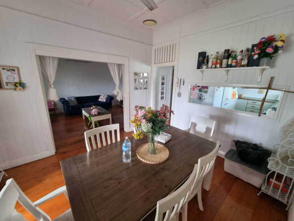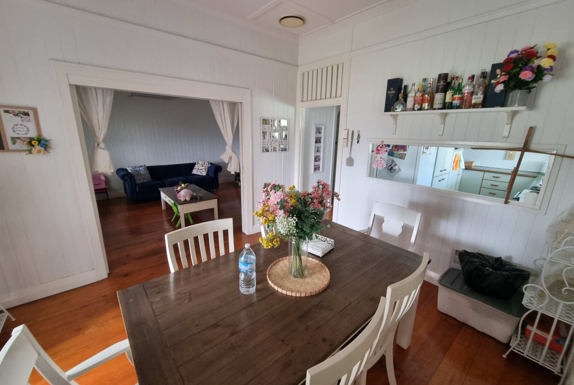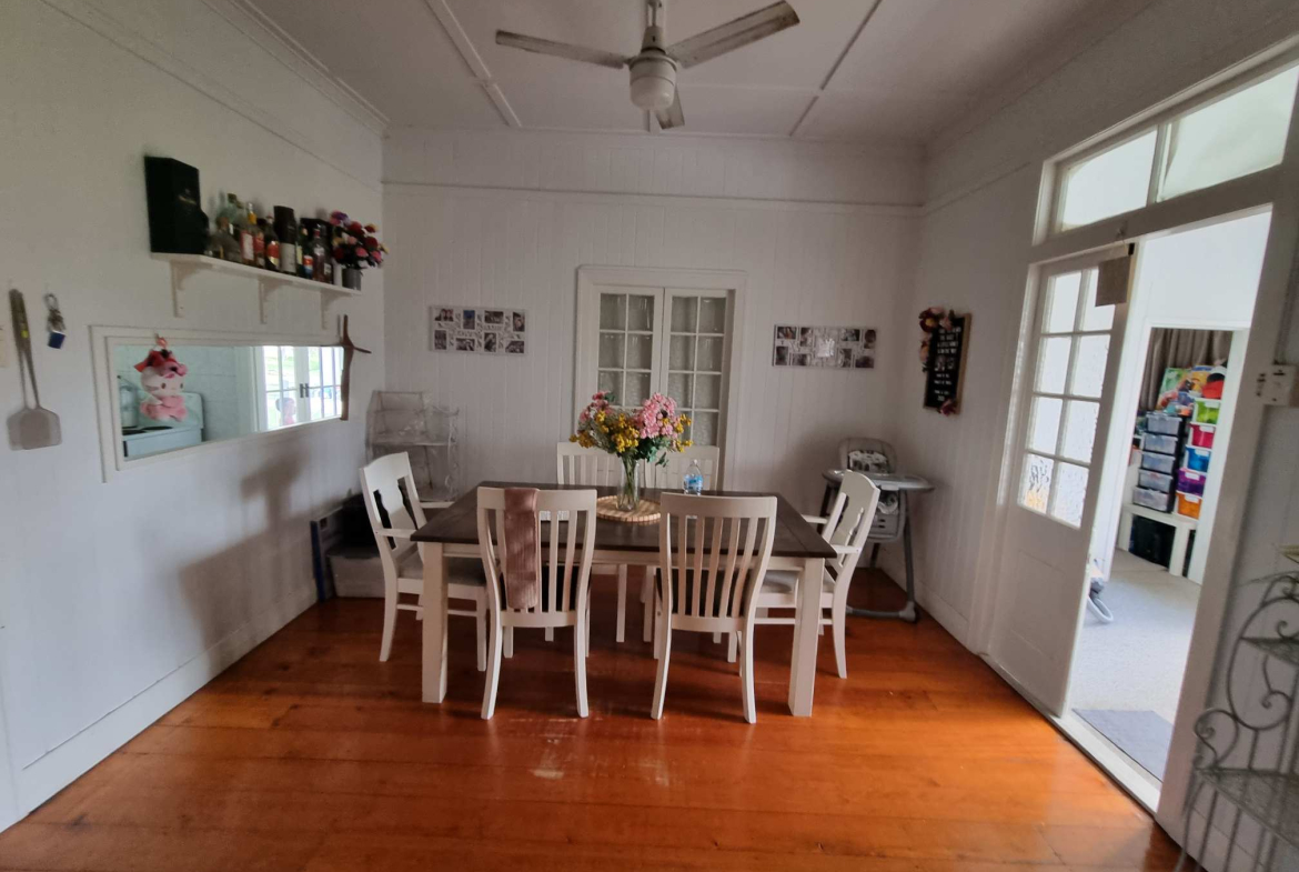 The home showcases the timeless appeal of VJ walls, high ceilings, polished timber floors, French doors, and classic casement windows — all the features buyers look for in an authentic Queenslander.